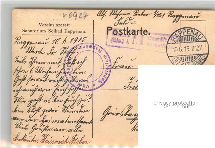 42937805 alte Postkarte Bad Rappenau Vereinslazarett Sanatorium postalisch gelaufen Feldpost Erhaltung siehe scans [KathaD81] KatCode: 11110008125006
