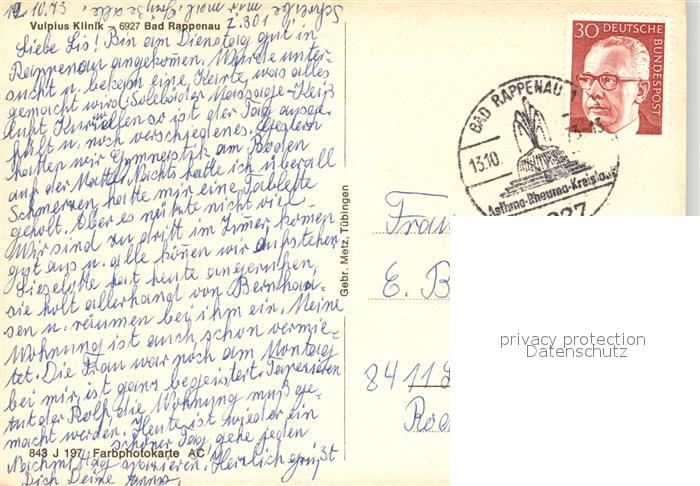 73101712 alte Postkarte Bad Rappenau Vulpus Klinik postalisch gelaufen Erhaltung siehe scans [WerneD78] KatCode: 11110008125006