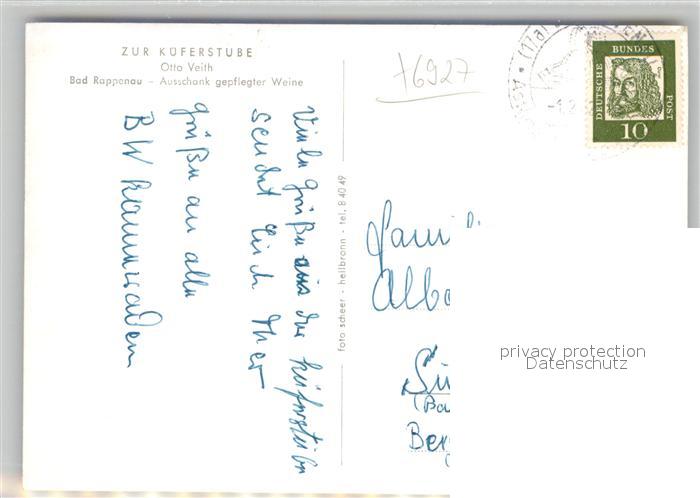 42937837 alte Postkarte Bad Rappenau Zur Kueferstube postalisch gelaufen Erhaltung siehe scans [KathaD81] KatCode: 11110008125006