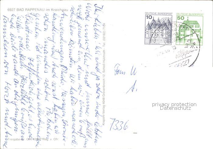 72223362 alte Postkarte Bad Rappenau postalisch gelaufen Erhaltung siehe scans KatCode: 11110008125006