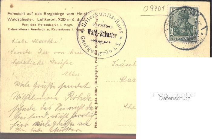 42268225 alte Postkarte Bad Reiboldsgruen Fernsicht auf das Erzgebirge vom Hotel Waldschuster postalisch gelaufen Erhaltung siehe scans KatCode: 11110014178030