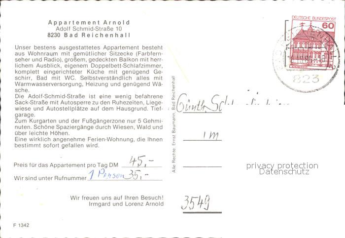 71909273 alte Postkarte Bad Reichenhall Appartement Arnold postalisch gelaufen Erhaltung siehe scans KatCode: 11110009172114