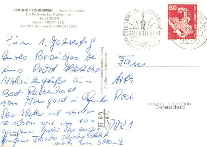 72989596 alte Postkarte Bad Reichenhall Berghof Schroffen Speisesaal Terrasse postalisch gelaufen Erhaltung siehe scans [WerneD78] KatCode: 11110009172114