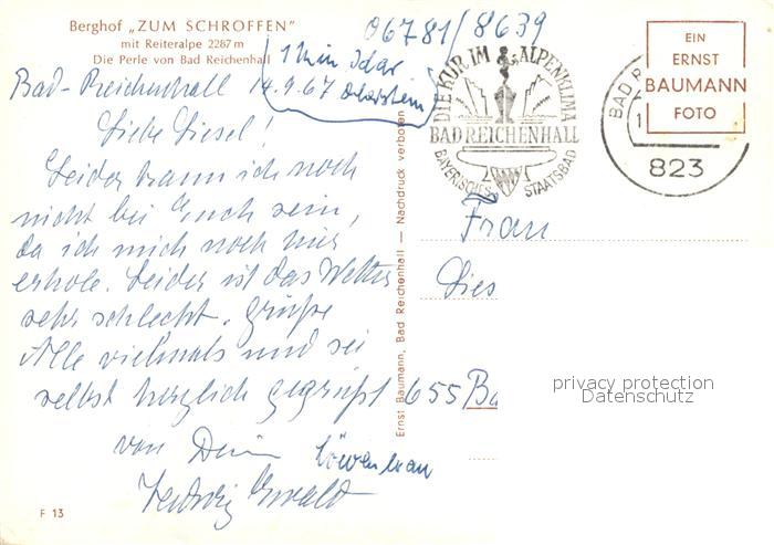 73107385 alte Postkarte Bad Reichenhall Berghof Zum Schroffen postalisch gelaufen Erhaltung siehe scans [NatalD47] KatCode: 11110009172114