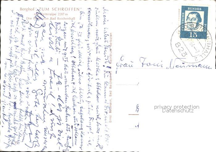 72403089 alte Postkarte Bad Reichenhall Berghof Zum Schroffen postalisch gelaufen Erhaltung siehe scans KatCode: 11110009172114