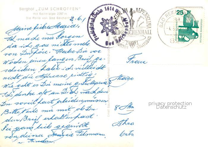 73165191 alte Postkarte Bad Reichenhall Berghof Zum Schroffen mit Reiteralpe postalisch gelaufen Erhaltung siehe scans [LiesaD40] KatCode: 11110009172114