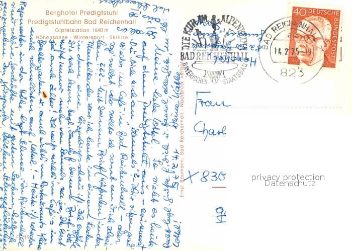 72627631 alte Postkarte Bad Reichenhall Berghotel Predigtstuhl postalisch gelaufen Erhaltung siehe scans [WerneD78] KatCode: 11110009172114