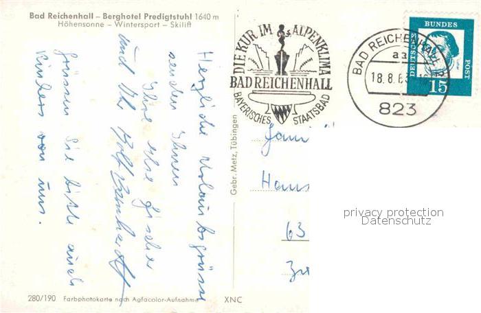 72754356 alte Postkarte Bad Reichenhall Berghotel Predigtstuhl Berchtesgadener Alpen postalisch gelaufen Erhaltung siehe scans [FriedD77] KatCode: 11110009172114