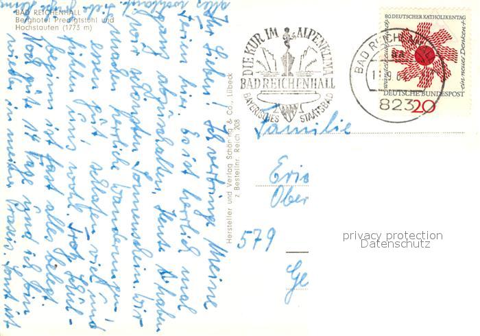 73167630 alte Postkarte Bad Reichenhall Berghotel Predigtstuhl und Hochstaufen Chiemgauer Alpen postalisch gelaufen Erhaltung siehe scans [FriedD77] KatCode: 11110009172114