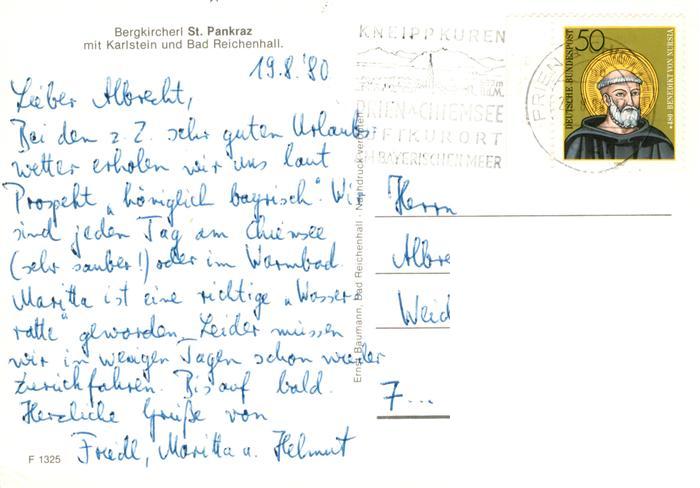 73878347 alte Postkarte Bad Reichenhall Bergkircherl St Pankraz mit Karlstein postalisch gelaufen Erhaltung siehe scans [WerneD78] KatCode: 11110009172114