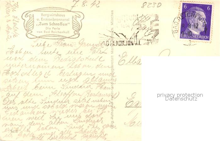 43495898 alte Postkarte Bad Reichenhall Bergwirtshaus Enzianbrennerei Zum Schroffen Bayerische Trachten Lederhosen postalisch gelaufen Erhaltung siehe scans [FriedD77] KatCode: 11110009172114