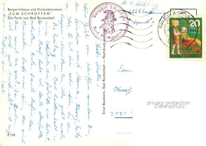 73060098 alte Postkarte Bad Reichenhall Bergwirtshaus und Enzianbrennerei Zum Schroffen Gastraum Wildpark Schuhplattler Trachtenmaedchen postalisch gelaufen Erhaltung siehe scans [FriedD77] KatCode: 11110009172114