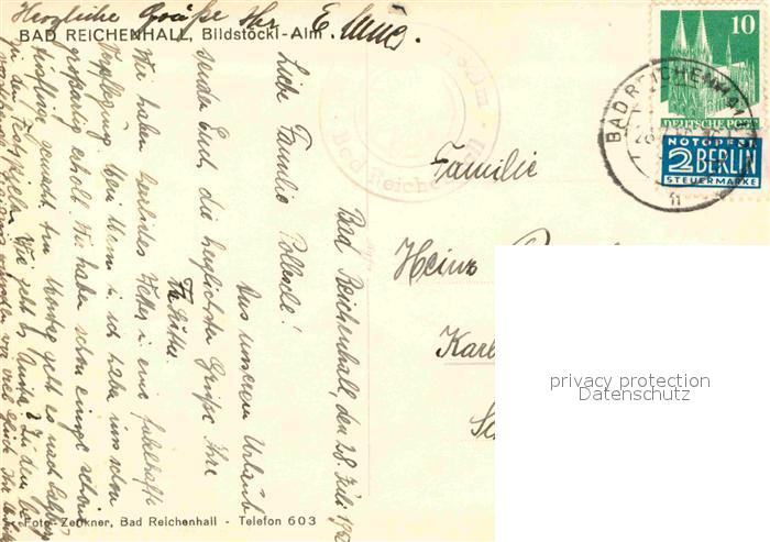 72790826 alte Postkarte Bad Reichenhall Bildstoeckl Alm postalisch gelaufen Erhaltung siehe scans [AndreD76] KatCode: 11110009172114