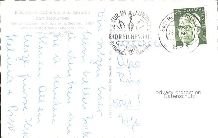 72200193 alte Postkarte Bad Reichenhall Braeuhausschaenke Buergerbraeu Ratsherren-Stuberl postalisch gelaufen Erhaltung siehe scans KatCode: 11110009172114