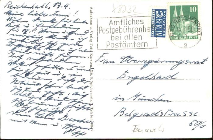 70941284 alte Postkarte Bad Reichenhall Feuerwehrerholungsheim postalisch gelaufen KatCode: 11110009172114
