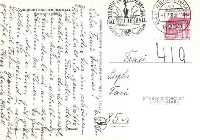 72839547 alte Postkarte Bad Reichenhall Fliegeraufnahme postalisch gelaufen Erhaltung siehe scans [AndreD76] KatCode: 11110009172114