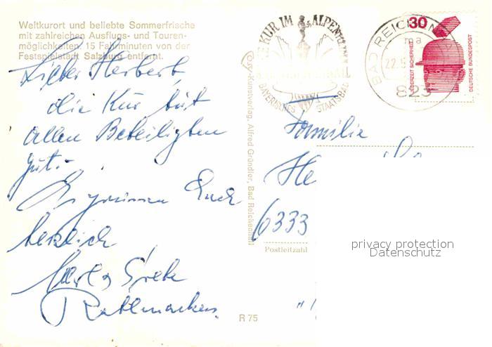 72917805 alte Postkarte Bad Reichenhall Fliegeraufnahme mit Hochkoenig Lattengebirge Hochkalter postalisch gelaufen Erhaltung siehe scans [LiesaD40] KatCode: 11110009172114