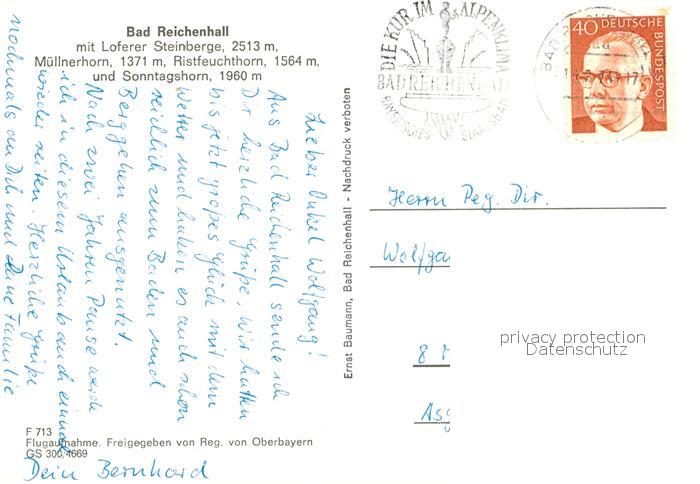 73609030 alte Postkarte Bad Reichenhall Fliegeraufnahme mit Loferer Steinberge Muellnerhorn Ristfeuchthorn und Sonntagshorn postalisch gelaufen Erhaltung siehe scans [WerneD78] KatCode: 11110009172114