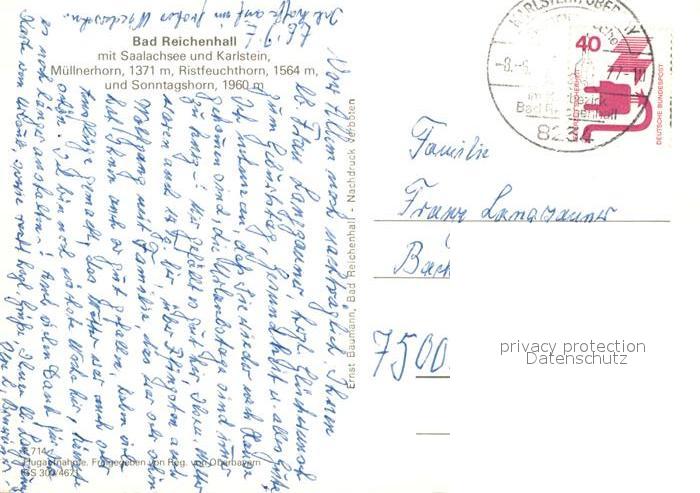 72941113 alte Postkarte Bad Reichenhall Fliegeraufnahme mit Saalachsee und Karlstein M?llnerhorn Ristfeuchthorn Sonntagshorn postalisch gelaufen Erhaltung siehe scans [LiesaD40] KatCode: 11110009172114