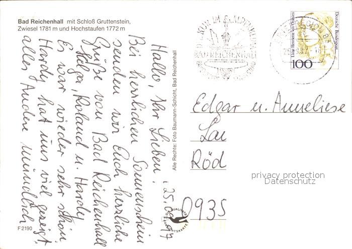 72447753 alte Postkarte Bad Reichenhall Fliegeraufnahme mit Schloss Gruttenstein Zwiesel und Hochstaufen postalisch gelaufen Erhaltung siehe scans KatCode: 11110009172114