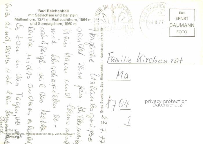 72888956 alte Postkarte Bad Reichenhall Fliegeraufnahme Saalachsee Karlstein Muellnerhorn Ristfeuchthorn postalisch gelaufen Erhaltung siehe scans [AndreD76] KatCode: 11110009172114