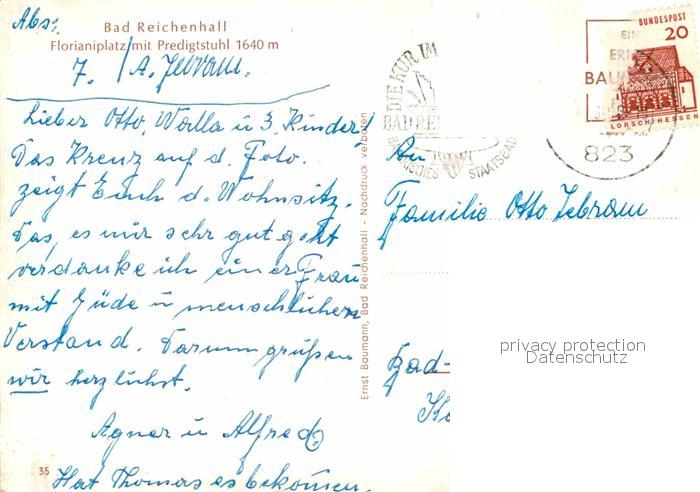 72616505 alte Postkarte Bad Reichenhall Florianiplatz mit Predigtstuhl postalisch gelaufen Erhaltung siehe scans [FriedD77] KatCode: 11110009172114