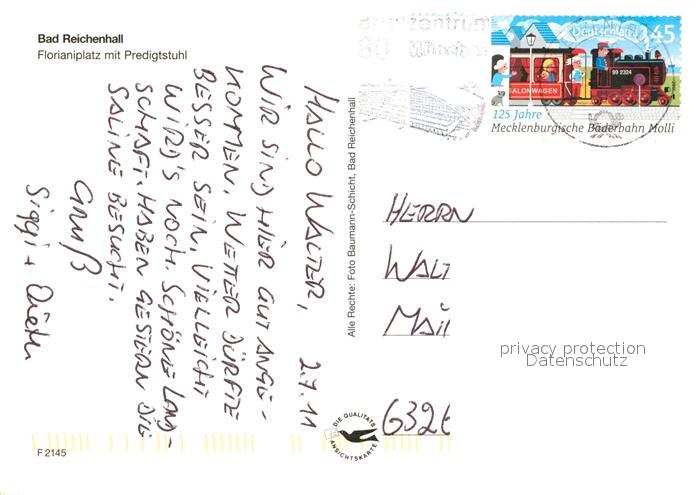 73181604 alte Postkarte Bad Reichenhall Florianplatz Predigtstuhl postalisch gelaufen Erhaltung siehe scans [KathaD81] KatCode: 11110009172114