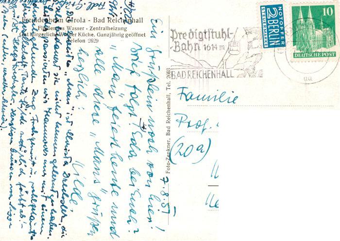 73938808 alte Postkarte Bad Reichenhall Fremdenheim Carola postalisch gelaufen Erhaltung siehe scans [FriedD77] KatCode: 11110009172114