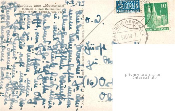 33141260 alte Postkarte Bad Reichenhall Gasthaus zum Motzenwirt Melleck postalisch gelaufen Erhaltung siehe scans [LiesaD40] KatCode: 11110009172114