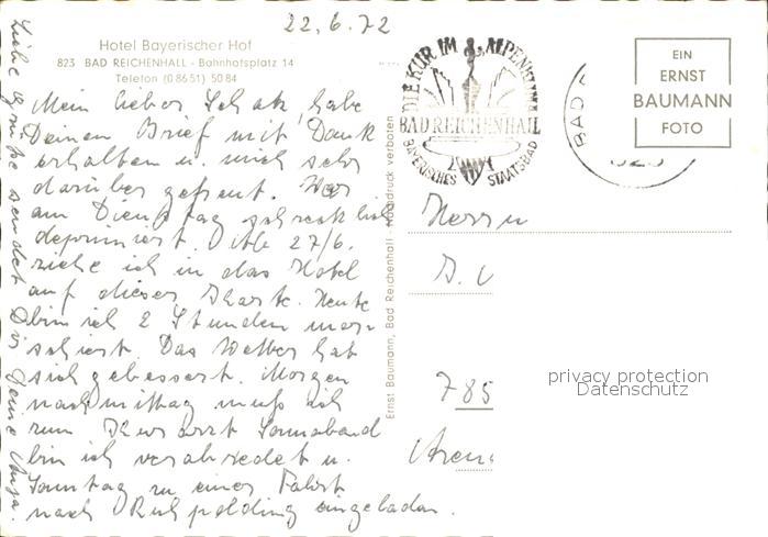 71866257 alte Postkarte Bad Reichenhall Hotel Bayerischer Hof postalisch gelaufen Erhaltung siehe scans KatCode: 11110009172114