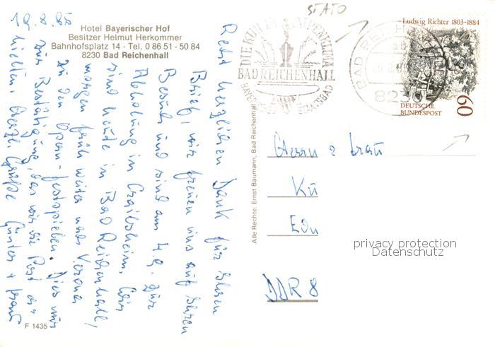73787428 alte Postkarte Bad Reichenhall Hotel Bayerischer Hof Restaurant Hallenbad Fremdenzimmer postalisch gelaufen Erhaltung siehe scans [FriedD77] KatCode: 11110009172114