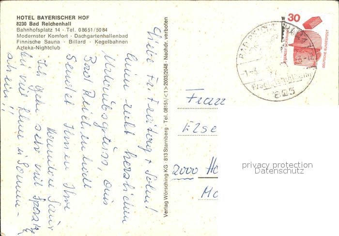 72035444 alte Postkarte Bad Reichenhall Hotel Bayerischer Hof Springbrunnen Skulptur postalisch gelaufen Erhaltung siehe scans KatCode: 11110009172114