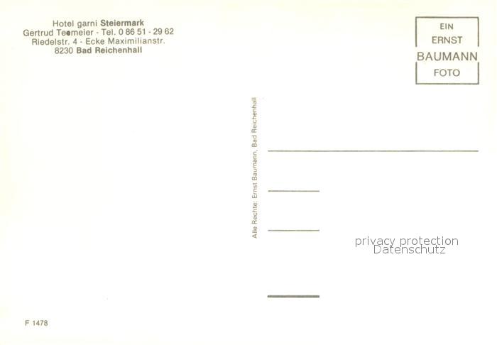 73615904 Bad Reichenhall Hotel garni Steiermark postalisch nicht gelaufen Erhaltung siehe scans [WerneD78] KatCode: 11110009172114