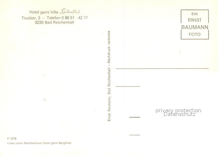 73615877 Bad Reichenhall Hotel garni Villa Schoenblick postalisch nicht gelaufen Erhaltung siehe scans [WerneD78] KatCode: 11110009172114