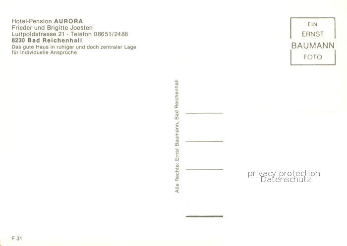 73615901 Bad Reichenhall Hotel Pension Aurora postalisch nicht gelaufen Erhaltung siehe scans [WerneD78] KatCode: 11110009172114