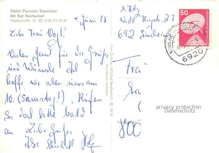 74100715 alte Postkarte BAD REICHENHALL Hotel Pension Excelsior Garten postalisch gelaufen Erhaltung siehe scans [FriedD77] KatCode: 11110009172114