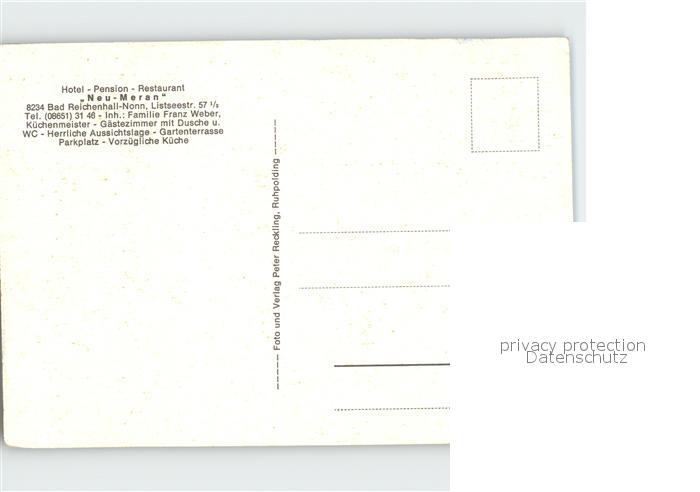 72921761 Bad Reichenhall Hotel Pension Neu Meran postalisch nicht gelaufen Erhaltung siehe scans [NatalD47] KatCode: 11110009172114