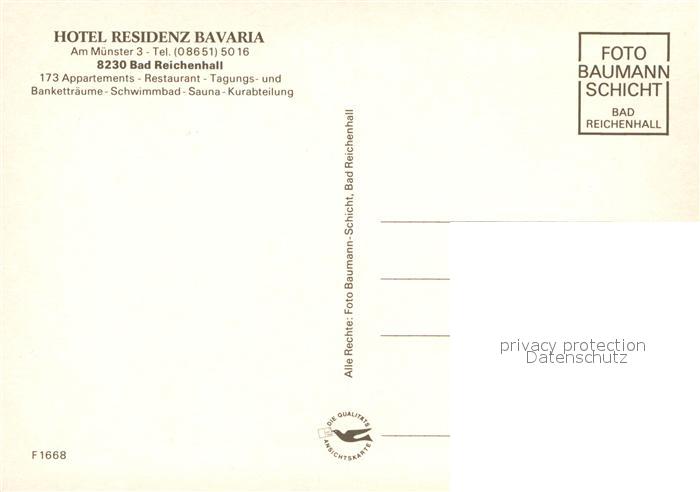 73158419 Bad Reichenhall Hotel Residenz Bavaria postalisch nicht gelaufen Erhaltung siehe scans [LiesaD40] KatCode: 11110009172114