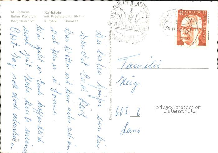 72509925 alte Postkarte Bad Reichenhall Karlstein Sankt Pankraz Ruine Bergbauernhof postalisch gelaufen Erhaltung siehe scans KatCode: 11110009172114