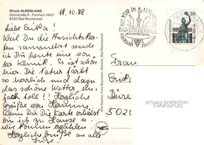 72781972 alte Postkarte Bad Reichenhall Klinik Alpenland postalisch gelaufen Erhaltung siehe scans [FriedD77] KatCode: 11110009172114