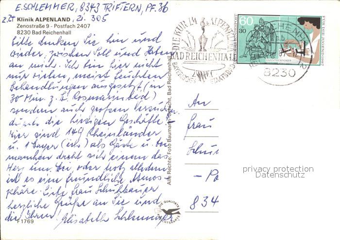 72263449 alte Postkarte Bad Reichenhall Klinik Alpenland postalisch gelaufen Erhaltung siehe scans KatCode: 11110009172114