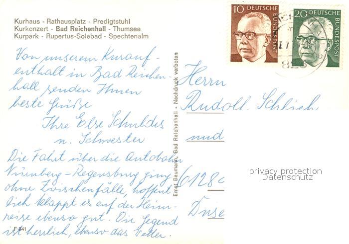 73122148 alte Postkarte Bad Reichenhall Kurhaus Rathausplatz Predigtstuhl Kurkonzert Thumsee Kurpark postalisch gelaufen Erhaltung siehe scans [KathaD81] KatCode: 11110009172114