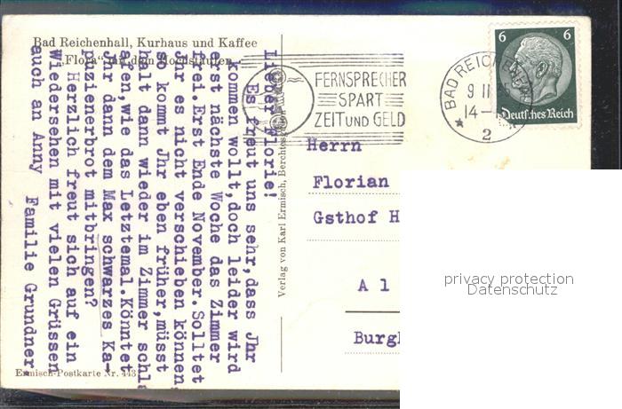72143060 alte Postkarte Bad Reichenhall Kurhaus und Kaffee Flora mit Hochstaufen postalisch gelaufen Erhaltung siehe scans KatCode: 11110009172114