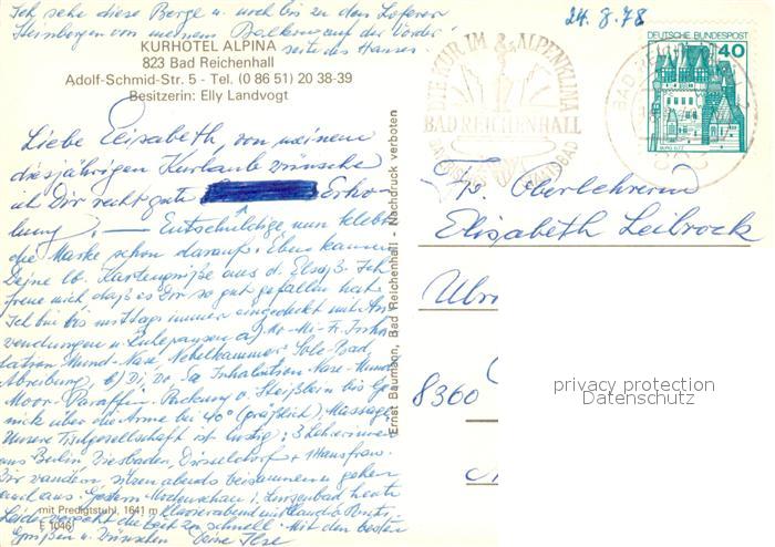 73687204 alte Postkarte Bad Reichenhall Kurhotel Alpina postalisch gelaufen Erhaltung siehe scans [FriedD77] KatCode: 11110009172114