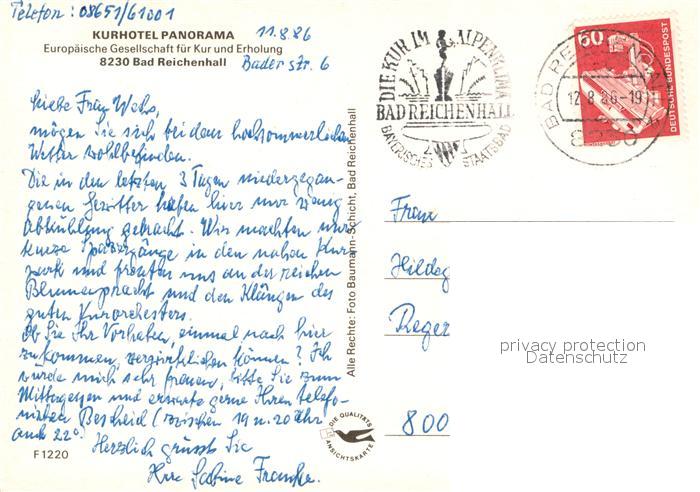 73748144 alte Postkarte Bad Reichenhall Kurhotel Panorama postalisch gelaufen Erhaltung siehe scans [WerneD78] KatCode: 11110009172114