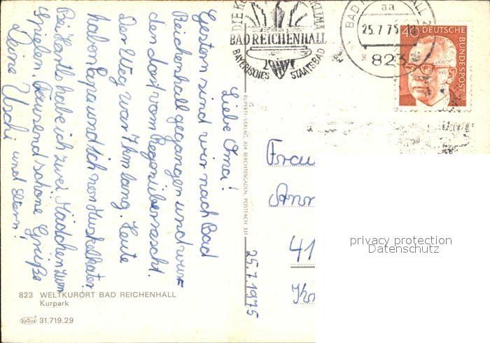 72527297 alte Postkarte Bad Reichenhall Kurpark postalisch gelaufen Erhaltung siehe scans KatCode: 11110009172114