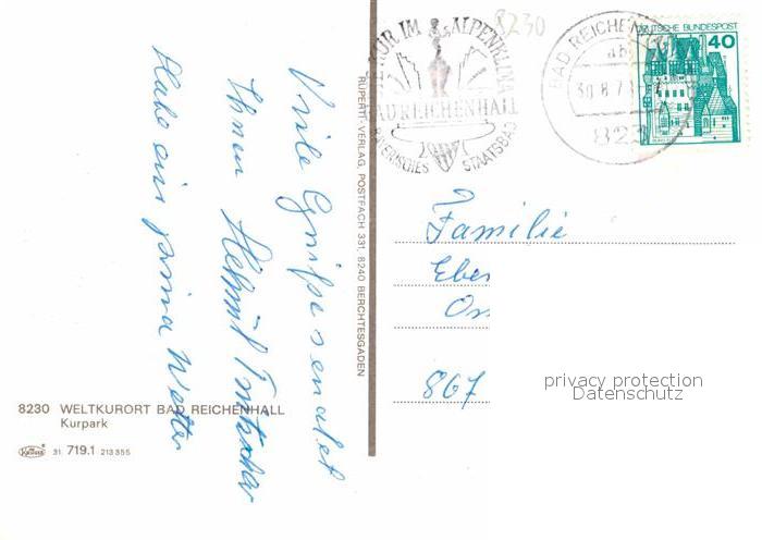 72885759 alte Postkarte Bad Reichenhall Kurpark Springbrunnen postalisch gelaufen Erhaltung siehe scans [FriedD77] KatCode: 11110009172114
