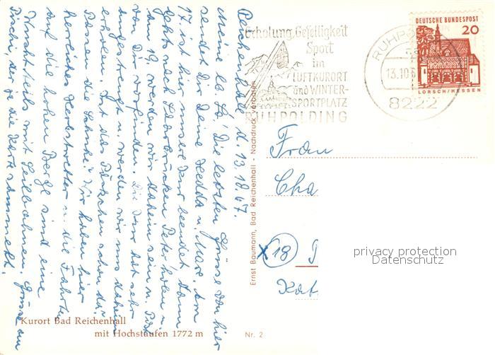 73044132 alte Postkarte Bad Reichenhall mit Hochstaufen postalisch gelaufen Erhaltung siehe scans [WerneD78] KatCode: 11110009172114