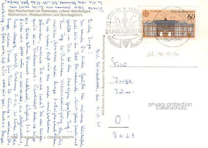 73758851 alte Postkarte Bad Reichenhall mit Reiteralpe Loferer Steinberge Muellnerhorn Ristfeuchthorn Sonntagshorn Chiemgauer Alpen postalisch gelaufen Fliegeraufnahme Erhaltung siehe scans [FriedD77] KatCode: 11110009172114