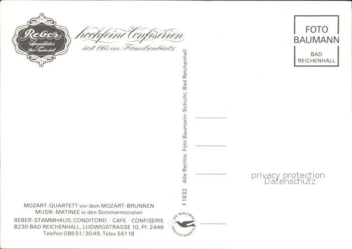 72113904 Bad Reichenhall Mozart Quartett vor dem Mozartbrunnen Cafe Reber postalisch nicht gelaufen Erhaltung siehe scans KatCode: 11110009172114